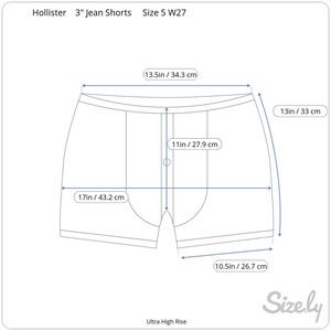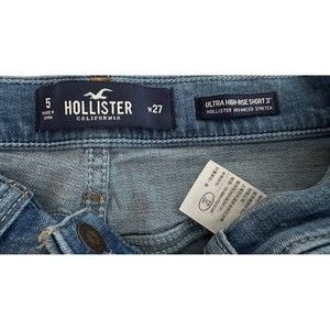 Hollister Women's Ultra High Rise 3" Vintage Stretch Blue Jean Denim Cuffed Shorts. Made of a cotton blend with five pockets and a zipper fly. Please look at and zoom in on the pics.