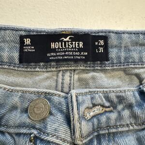Hollister Women's Ultra High Rise Dad Jeans Distressed Cotton Blue Size 3R / 31L