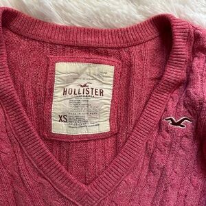 Chic V-neck sweater by Hollister. Features a rich pink color. Perfect for layering and casual wear.