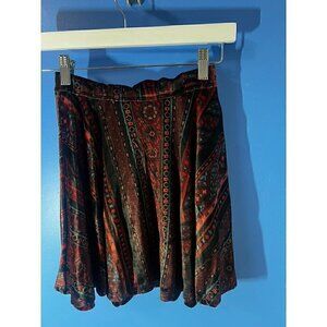 Hollister Womens Velvet Boho-Style Mini Skirt With Multicolor Red & Black Patter