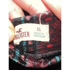 This Hollister mini skirt features a soft velvet construction with a vibrant multicolor boho pattern in red and black tones. Designed for a flattering fit, it is lightweight and versatile for various styling options. The skirt's unique pattern and high-quality material offer both comfort and aesthetic appeal.