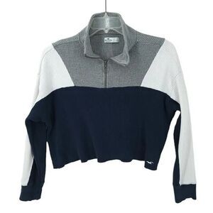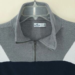 This Hollister waffle knit top features a 1/4 zip, long sleeves, and raw hem detailing in a cropped fit.