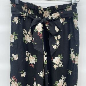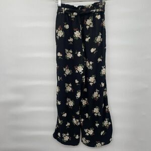 Hollister Women's Wide-Cut Paper-Bag Pants in Black Floral Size XS Elastic Waist