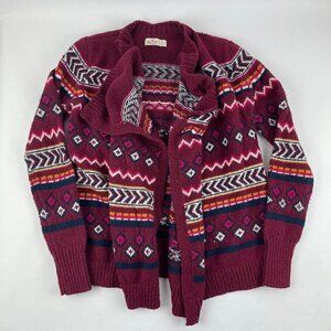Hollister Wrap Style Cardigan Womens Small Red Aztec Striped Long Sleeve