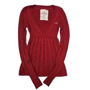 Hollister Y2K Babydoll Cable Knit Sweater Womens XS Bella Swan Rabbit Hair Red