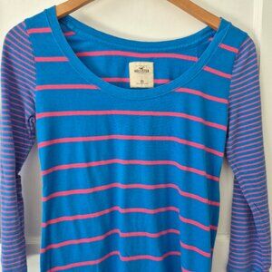 Hollister Y2K Blue and Pink Striped Scoop Neck Top Sz XS