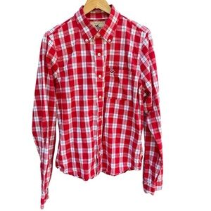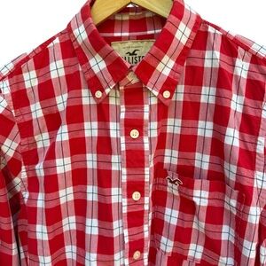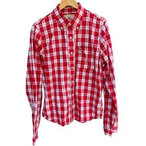 Hollister Y2K Men Casual Shirt Red Check Cotton size XL 100% Cotton lightweight