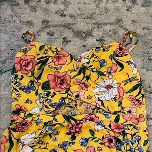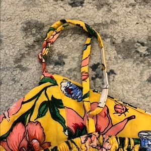 Hollister Yellow with Pink Floral Midi Sundress with Keyhole Cut