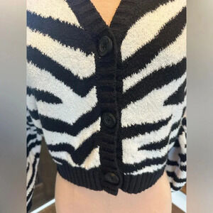 Hollister cropped cardigan, Hollister zebra print cardigan, Hollister XS sweater, Hollister Y2K cardigan, zebra print cropped sweater XS, animal print cardigan XS, Y2K aesthetic cardigan, TikTok Hollister sweater, Gen Z layering cardigan, back-to-school cardigan, holiday outfit cardigan, festival outfit sweater, game day layering sweater, girls night out cardigan, casual Hollister cropped sweater, animal print layering cardigan, trendy zebra cardigan Hollister XS