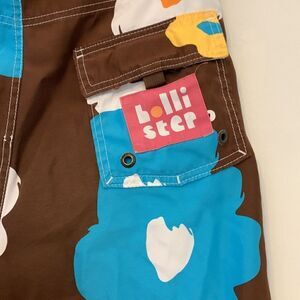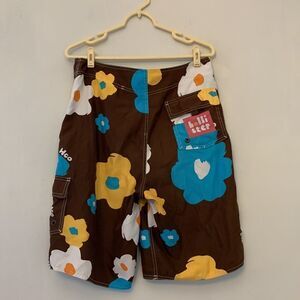 Hollister brown and blue floral swim trunks Size 30 Tie waist