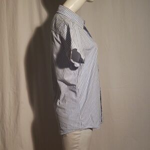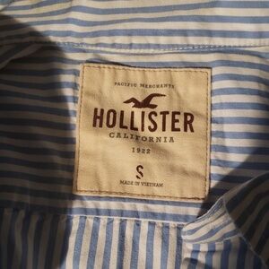 Blue and white stripes Hollister button down short sleeve shirt un a good preowned condition