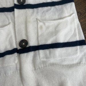Hollister button-up cardigan in size XS with big/wide navy blue stripes on white background.