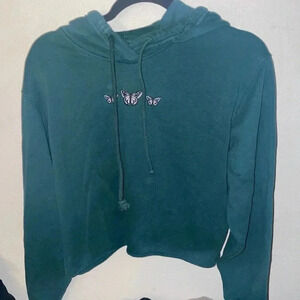 Hollister cropped hoodie Small butterflies Y2K green retro pullover 90's style