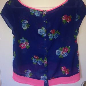 Hollister floral crop top. Mainly blue with pink bottom. Has a cute button up back!! size XS. perfect condition!