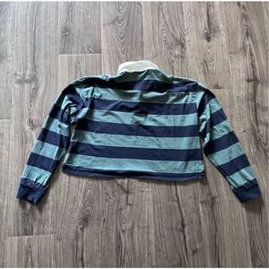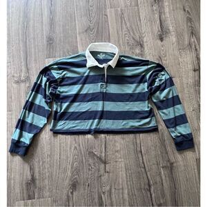 Hollister greens and navy striped polo shirt cropped fit Women’s Medium
