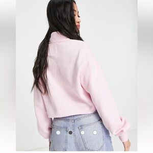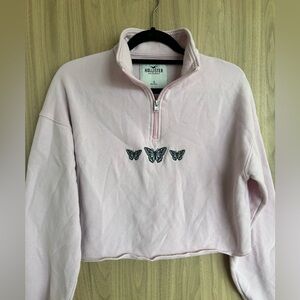 Hollister high neck embroidered cropped sweatshirt in pink small butterflies
