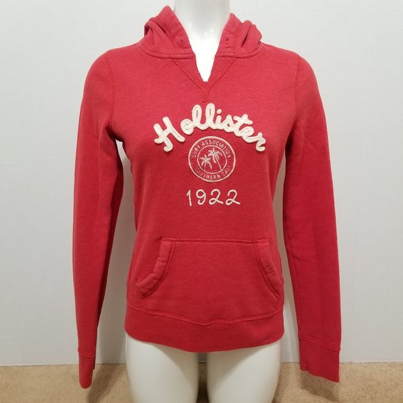 Hollister 1922 Surf Association Southern Cali palm tree embroidered applique patch slogan logo notch v-neck pullover hoodie/hooded sweatshirt. Kangaroo pocket. Lounge, loungewear, Y2K.