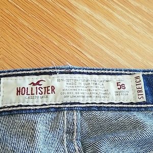 Hollister co jeans. Stretch jeans size 5s. There is slight wear around ankle as noted in photo. 5 pocket and lower rise.