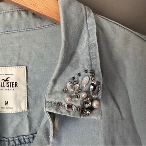 Hollister jeweled collar denim button down