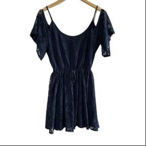 Hollister navy lace dress - cold shoulder- elasticized waist - size M