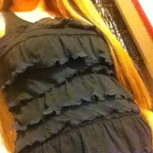 navy blue tank top with ruffles all the way down- lightly worn but in good condition :)
