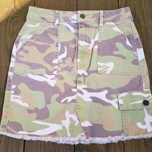 Hollister size 1/ 25 pink camo skirt. Zipper & button front closure. Multiple usable pockets. no stains or imperfections.