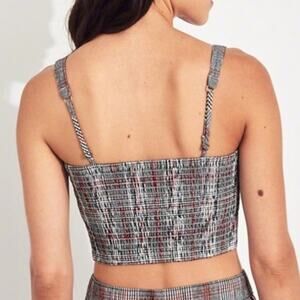 Hollister square neck button front plaid crop top ruched goth punk women’s small