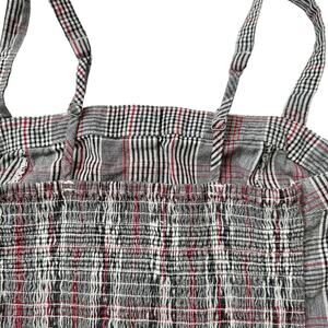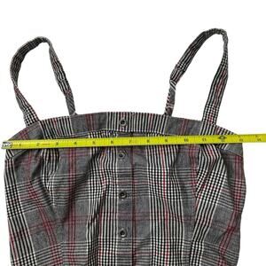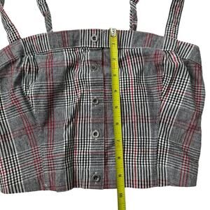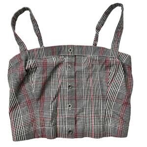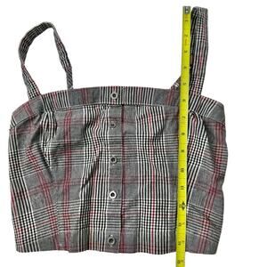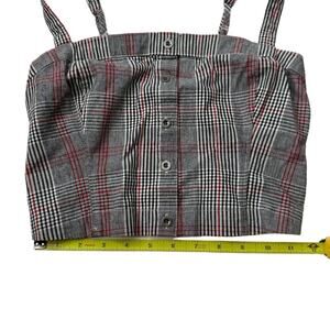 Hollister square neck button front plaid crop top gray red black ruched goth punk