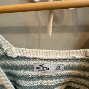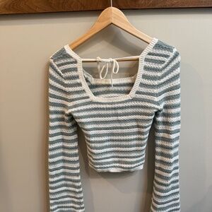 Sage and white striped Hollister sweater with bell sleeves, tie in back.
