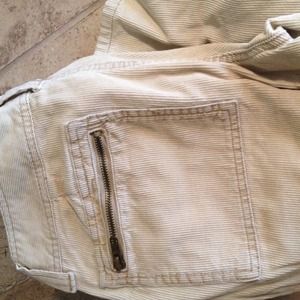 These are a great light tan color corderoy that I purchased from an outlet, so the tag is marked and they cannot be returned. They are regular length, which is why I'm selling them they're too short. Zipper front and back pockets with a slight flare bottom. I maybe wore them twice. They're a juniors 9, I regularly wear a size 6.