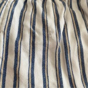 *one small flaw- pictured. Shorts flowy with a gathered waist and with a stripe pattern design, so the flaw is barely noticeable while wearing and unless you look for it, it’s very hard to see while on.