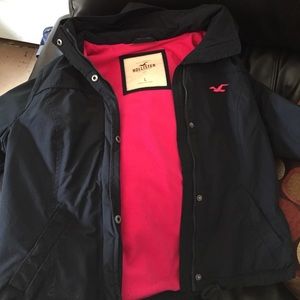 Dark Navy/Pink fleece lined. Excellent condition (like new). Adjustable draw string bottom.