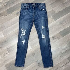 Hollister Advanced Stretch Distressed Skinny Jeans Blue Mens 34 X 32 Grunge