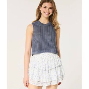 Hollister High-neck Crochet-style Sweater Tank Gray Blue Size Large
