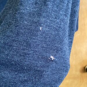 Has 5 small holes in 1 sleeve (pictured) other than that good condition, super soft, great layering piece