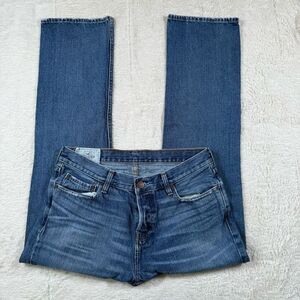 Hollister Men’s Straight Leg Button Fly Jeans in pre owned condition. Please view all photos for signs of wear. Size men’s 33x32. Waist 16 1/2”, rise 10 1/2”, inseam 30 1/4”, leg opening 8 1/4”.