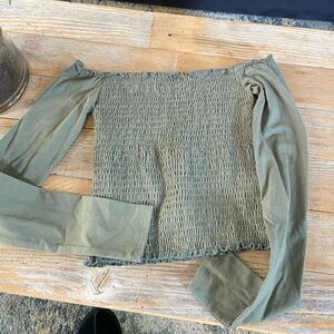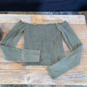 Hollister Smocked Off The Shoulder Long Sleeve green