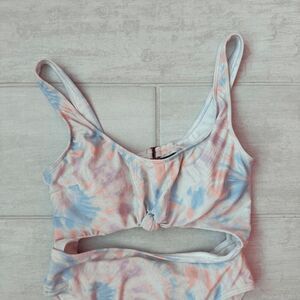 Hollister Swim One-Piece Bathing Suit Cut Out Tie Dye Blue Pink Small Front Knot