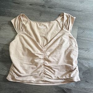 Hollister Ruched V Neck Cropped Top Taupe Tan XL