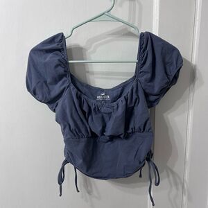 Hollister Women's Dark Blue Puff Sleeve Blouse