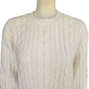 Hollister Women’s S White Cable Knit Sweater Crewneck Long Sleeve Chunky Pullove