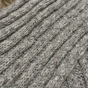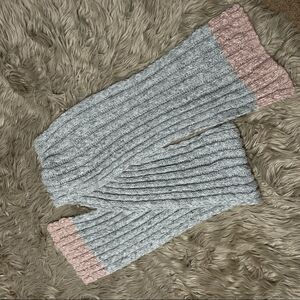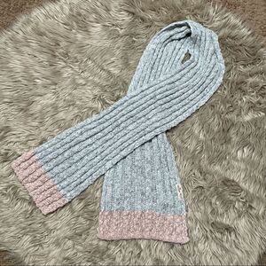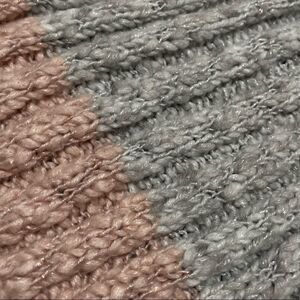 Warm and cozy 76” long 9.5” wide hollister scarf. Gray with pink and metallic threads woven in.