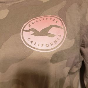 EUC size M camo and pink Hollister long sleeve top. Has front logo with Hollister written down both sleeves.