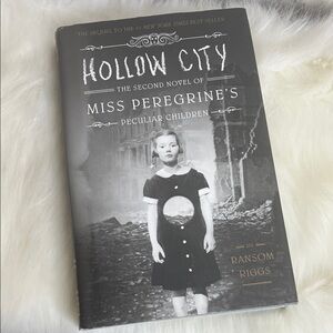 Explore the mysterious world of 'Hollow City,' the second novel of Miss Peregrine's Peculiar Children by . This captivating black and white hardcover is a must-have for fans of thrilling adventures.