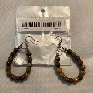 Pretty lightweight color beads (hollow droplet shape) dangle earrings for Fall / Autumn wear. Nice gift idea or wear with your favorite seasonal outfiit - pairs well with red, orange, natural beige or dark brown, and medium to dark green!