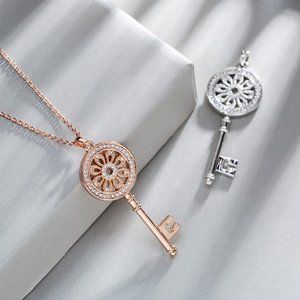 💞Hollow Flower CZ Dainty Micro Pave Silver Plated Necklaces for Women,EVGG1095