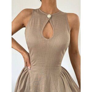 Hollow Front Cinched Waist A-Line Side Ruched Maxi Dress tan