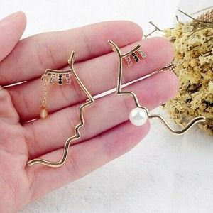 Hollow Gold Earrings Face Eyelashes Tears w Pearl