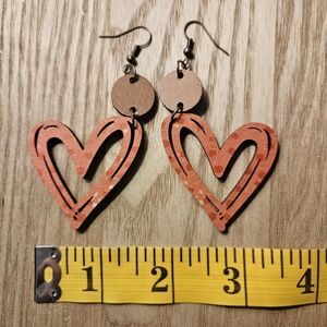 Hollow Heart Design Dangle Earrings Retro Simple Style Wooden Jewelry Valentine