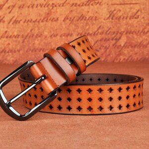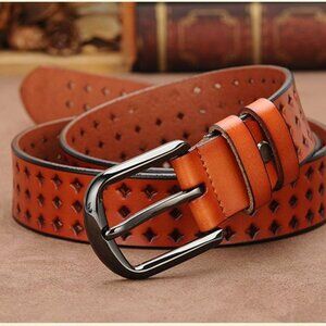 This hollow-out designer belts is made of genuine leather, soft and comfortable, perfect for daily wear and formal occasions.